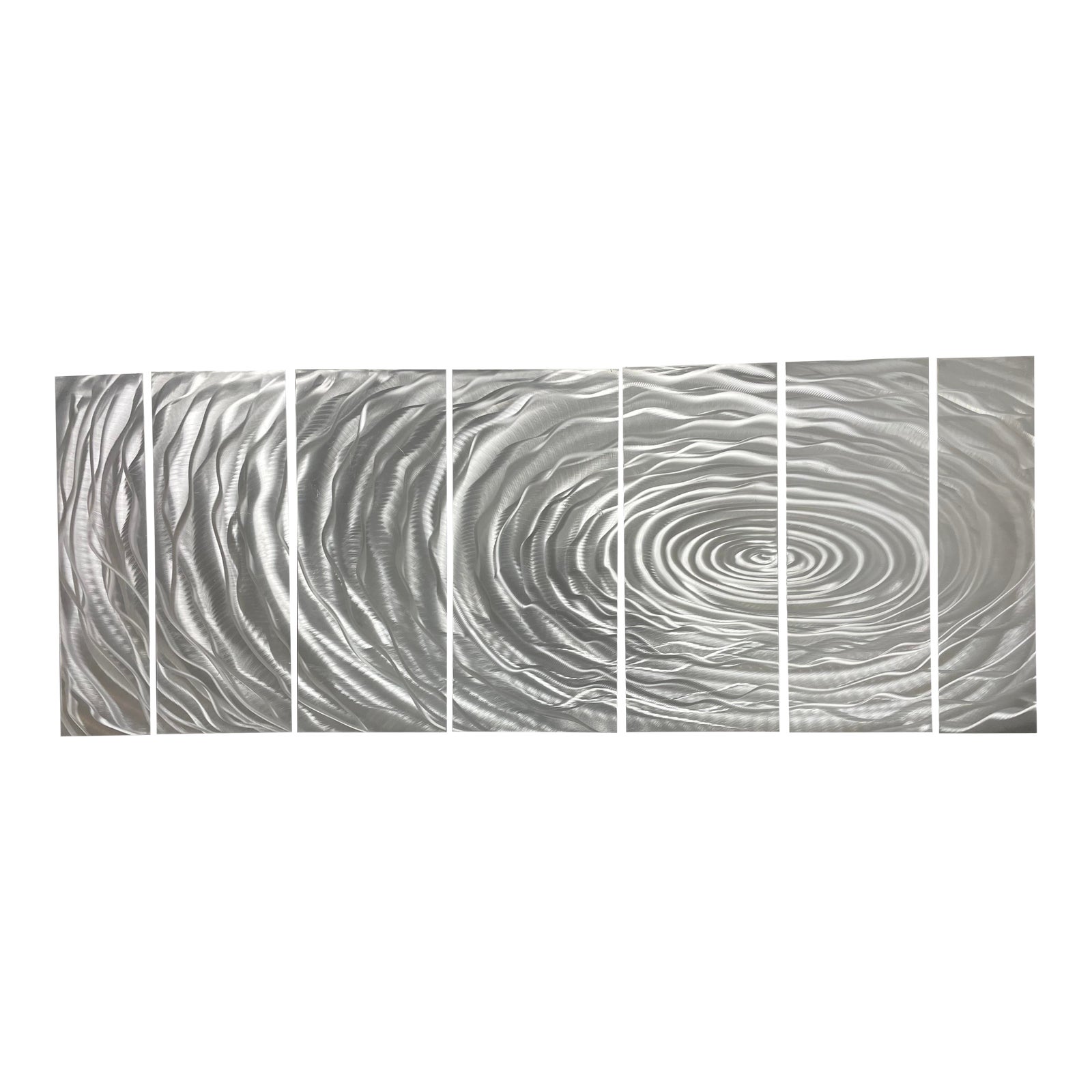 Design Plus Gallery presents a Set of Seven Brushed Metal Wall Decor Pieces. Mounted with brackets on the back of each panel for a floating effect. Pieces are numbered to fit together for a swirl composition. Small scale panels encourage customization with playful configurations.