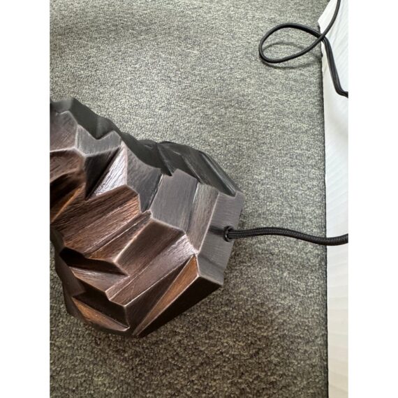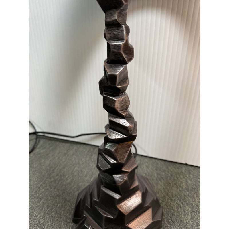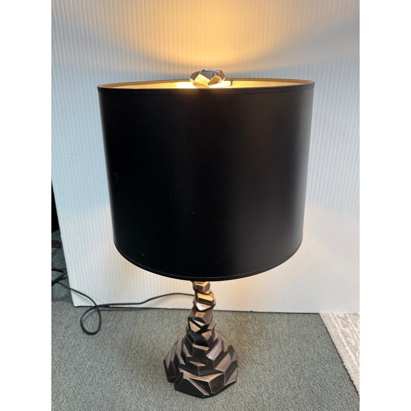 Design Plus Gallery presents a Rock Black Table Lamp from Michael Aram. Elevate your modern room with the stunning sculptural design of the Rock Black table lamp. This hand-crafted piece draws inspiration from natural stone formations and glam rock style alike, with its jagged texture and black nickel-tone sheen. The style of lamp has been discontinued by the brand. Overall, it is in good condition with visible and minimal wear from usage.