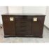Design Plus Gallery presents the Hayward Dresser from Michael Berman. This bespoke dresser is custom made upon order and has such elegant finishes as well as style. The front center has five staggered depth drawers that effortlessly pull out for structured placements of foldable items. The two side doors open to reveal inner shelving that is removable. Stylistically pleasing the two doors on the side are recessed with a parchment glazed hardware that is so becoming against their (likely) Bronze Glaze finish. The dresser is in good condition with visible and minimal signs of visible wear for its usage. Made in the USA.