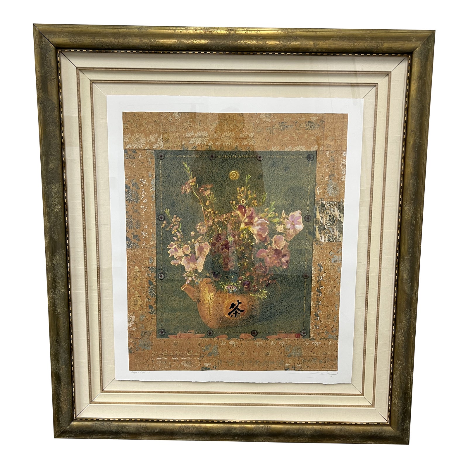 Design Plus Galler presents a Limited Edition “Chang O Moon” Mixed Media on Paper by Michelle Samerhan. Pencil signed and titled, and with the notation A/P (artist proof) in pencil at lower margin. Custom framed with double linen mats, double gilt wood moulding with plexiglass. This was a gift from the artist in 1999. From the Addi Galleries of Lahaina Hawaii.