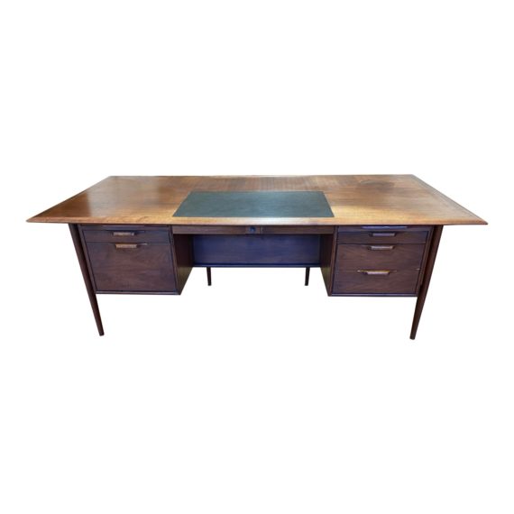 Mid 20th Century Alma Walnut + Mahogany Castilian Series Desk