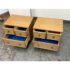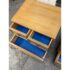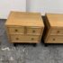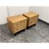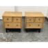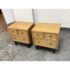 Design Plus Gallery presents a Pair of Blonde Walnut Nightstands by American of Martinsville from the Late 20th Century. These nightstands are made from solid walnut with a light blonde finish, smooth top, brass hardware, black painted slightly raised base on four legs with base caps. Features two half width top drawers and a lower full width drawer all having dovetail construction. These are discontinued models with the brand; they are in good condition for their vintage usage. Made in the USA