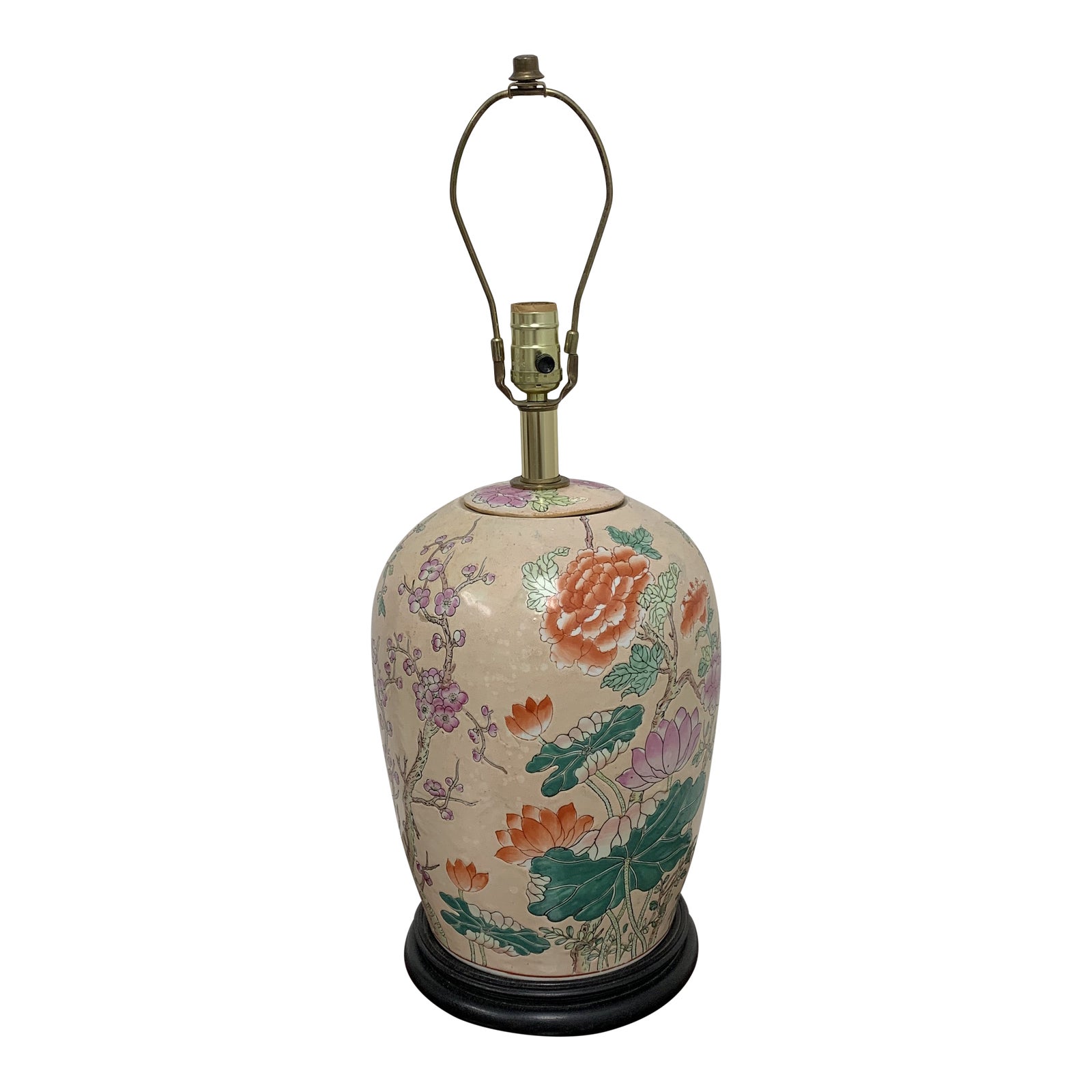 Mid-20th Century Floral Chinese Porcelain Jar Table Lamp