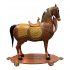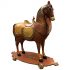 Design Plus Gallery presents a Mid-20th Century Hand Painted Wood Horse + Wheels. Painted patterns and metallic finishes surround this antique style toy horse. Horse is adorned with ceremonial fashions. Minor wear and aged. Original Purchased from an Antique showroom in the San Francisco Design Center.
