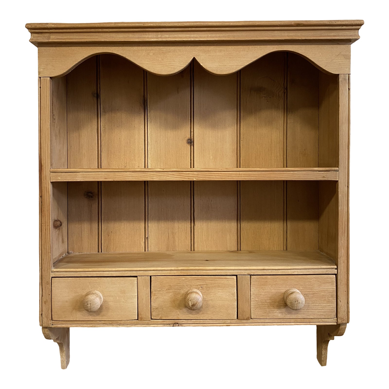 Mid 20th-Century Hanging English Pine Shelf + 3 Drawers