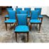 Design Plus Gallery presents a Set of Eight Teal Dining Chairs from Heywood Wakefield. The set of chairs are set into a solid walnut frames with a honey brown finish very on par for their Mid Century age + style. The material chosen for upholstery is a sweet spot in design; slightly bold but always appealing to the eye. It is slightly texturized with a nubby hand feel. Effortlessly stylish, the set has seven side chairs and a single head of table chair with arms. Brand stamp from Heywood Wakefield is found on each one. Overall, the vintage set of chairs are in good condition with visible wear to the fabric + frame. Made in the USA.