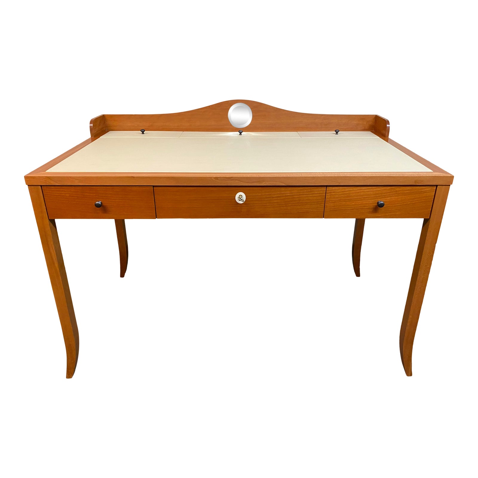 Mid 20th Century Ivory Leather + Cherry Desk Leather Top Desk