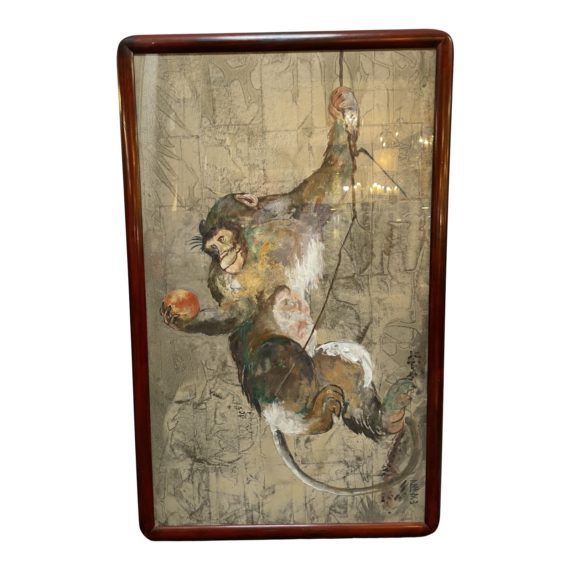Mid 20th Century Large Scale Original Monkey Watercolor Painting – Signed