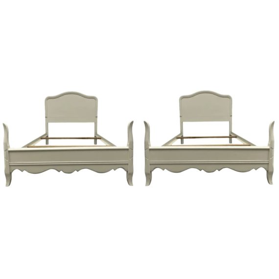Mid 20th Century Twin Size Off White Painted Bed Frames, a Pair