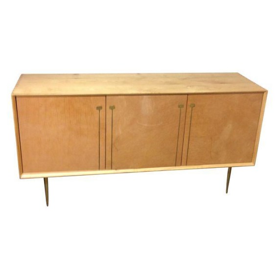 Design Plus Consignment Gallery has a Mid-Century Bamboo 3- Door Credenza. From Organic Modernism. This beauty can be places in any dinging room or office. The Frame is a American walnut. The legs and design inserts are brass. The three front doors are leather wrap. The inside has shelving for your items.