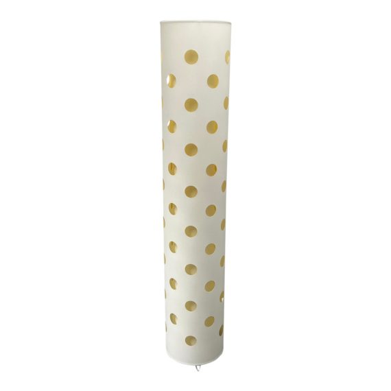 Design Plus Gallery presents a Standing Tubular Floor Lamp with Multiple Laser Cut Dots in the Double Linen Shade. This unique and rare floor lamp will give your home the warm ambience it deserves. Striking in it subtle quirkiness the lamp will transform whatever room you choose to house it in your home. In good condition with minor surface wear.