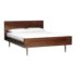 Design Plus Gallery presents a custom Eastern King Platform bed by Miles & May. This contemporary design is light on its turned wood feet but surprisingly sturdy as its frame is anchored by 1/4” steel plate brackets. Beautiful solid walnut creates the drama in a strong minimal silhouette. Light surface wear; condition is good for age and use; missing two screws from the metal support; easily replaced.