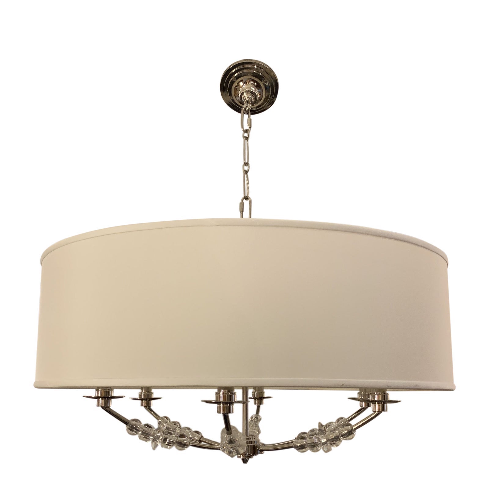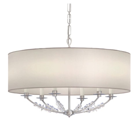 Design Plus Gallery presents a Mirage Drum Pendant by Crystorama. A polished nickel fixture embellished with clear faceted crystal beads on the arms and a crisp clean white silk shade to tie the package together beautifully. Consist of six lights.