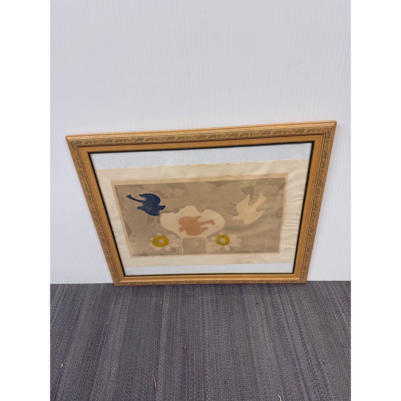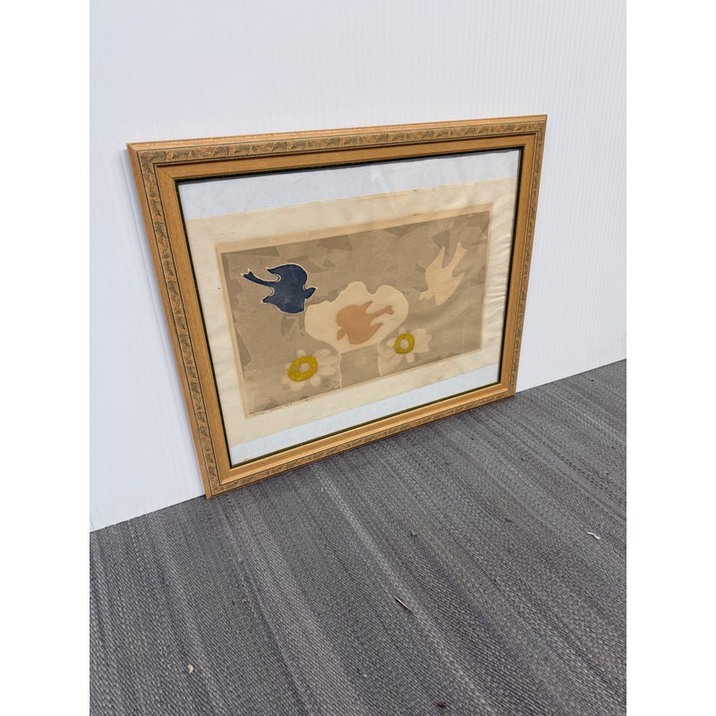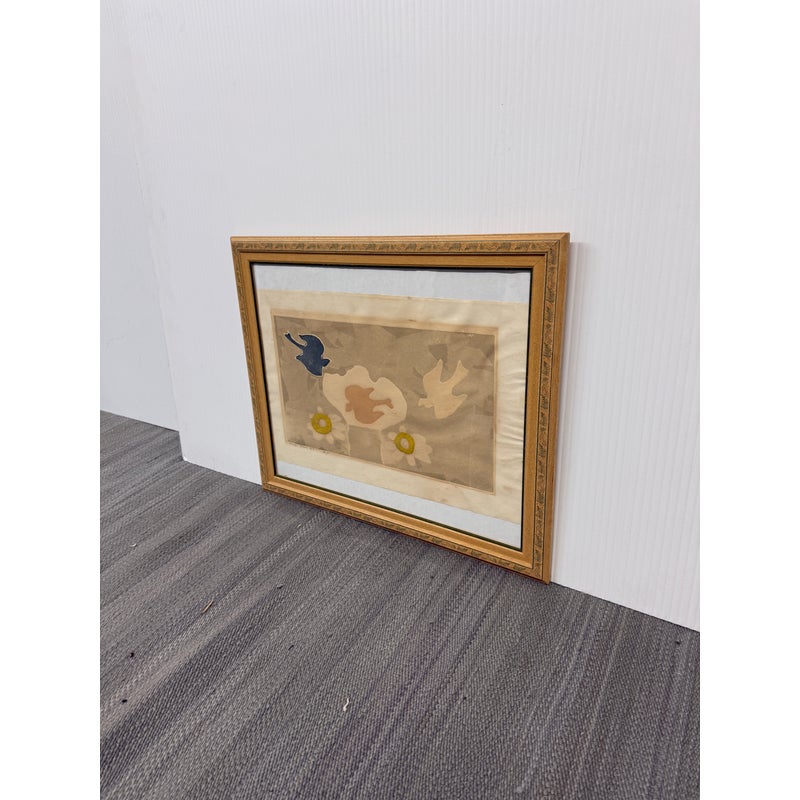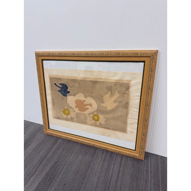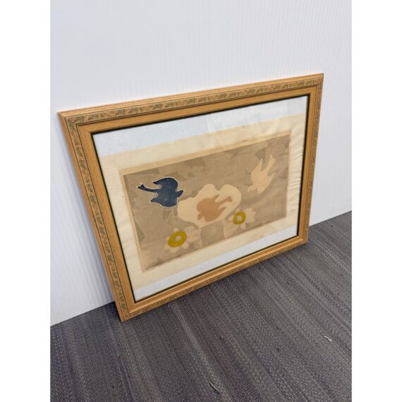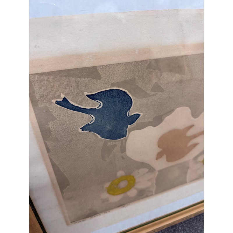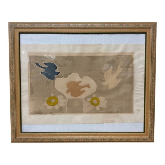 Design Plus Gallery presents a Limited Edition Etching by Mireille Kramer, born 1932, Egypt from Ethan Allen. The bird + flower motif is one that was found in many of the artist’s work, circa 1980’s. Intaglio Etching and Aquatint, signed and numbered in pencil by artist. Visible wear; condition is fair for age and use.