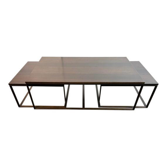 Design Plus Gallery presents the Allure Table Set by Mitchell Gold + Bob Williams. The three pieces, coffee table and two nesting side tables create a moody centerpiece to any seating area with rich woodgrain surface complemented with bronze finished metal base. Simple silhouette and easy function in an elegant contemporary set.
