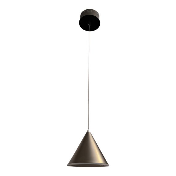 Design Plus Gallery presents a Conical Lighting Pendant. The cone is in a steel finish with a top and trim transparent. In good condition, visible and minimal wear.