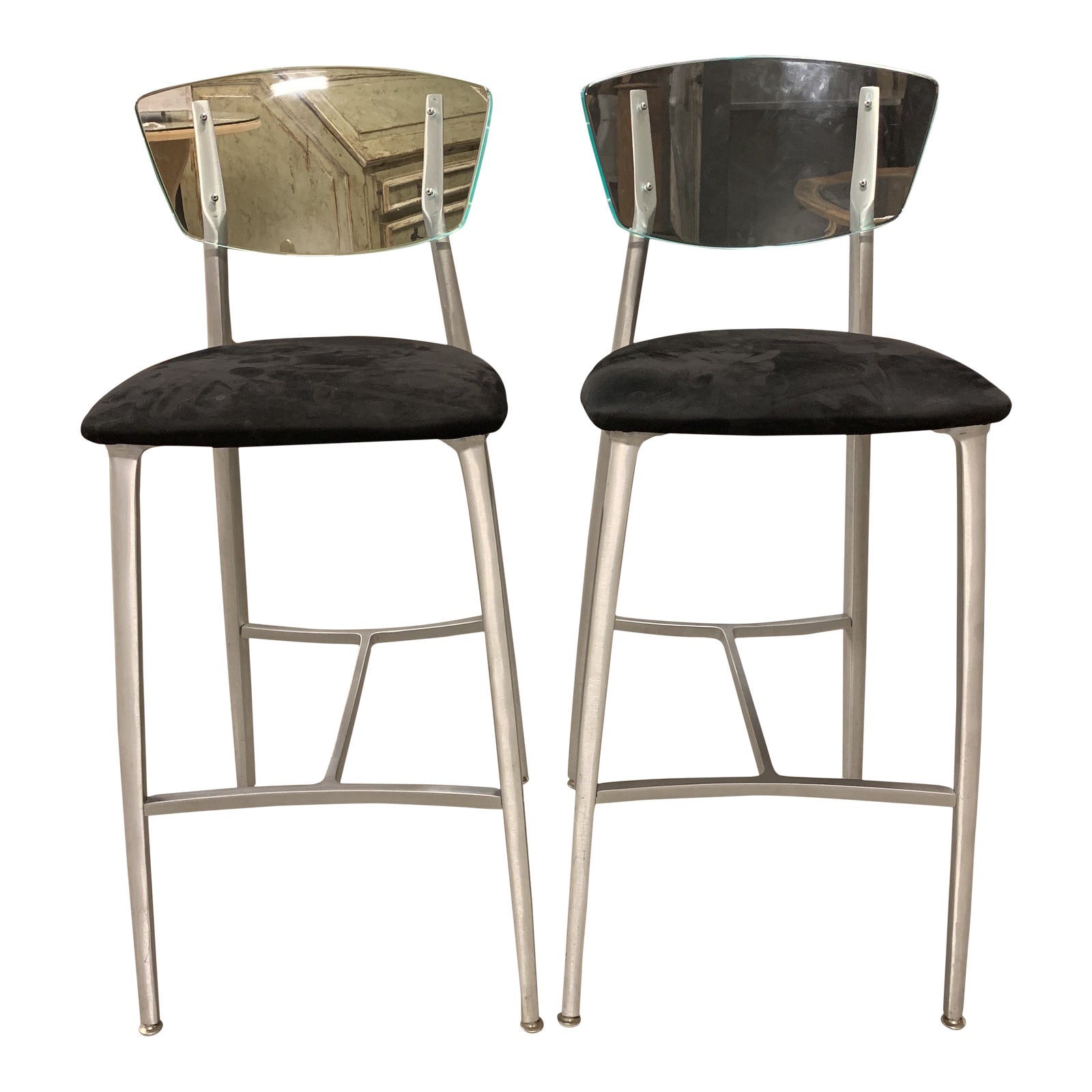Modern Lucite + Aluminum + Upholstered Bar Stool, Pair