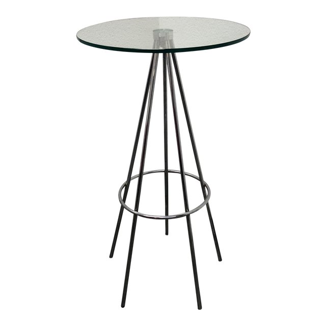 Modern Round Chrome & Glass Bar Table