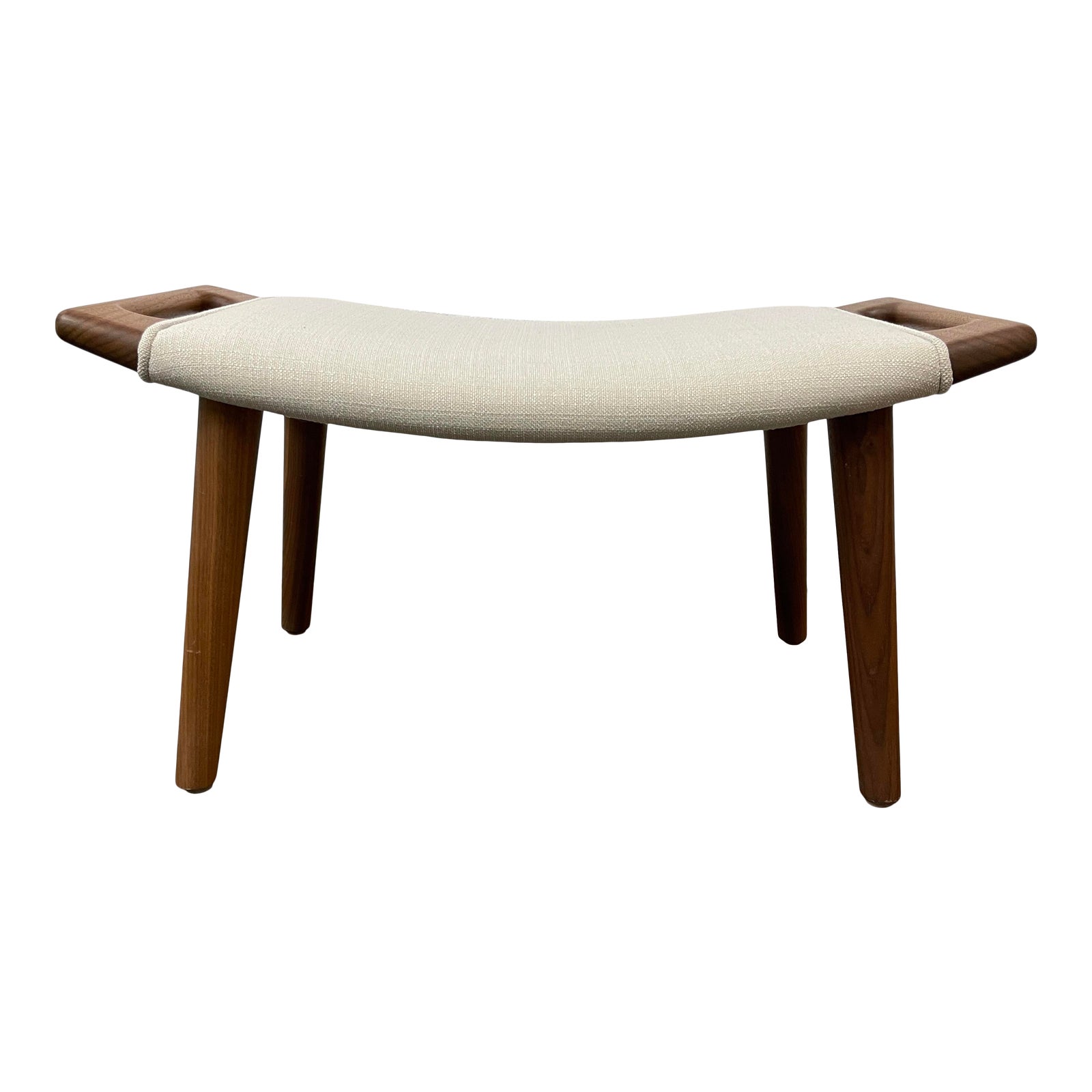 Design Plus Gallery presents a Papa Bear Ottoman by Modernica. The Papa Bear Ottoman have been produced entirely in a Los Angeles factory using traditional construction methods. The legs and handles are constructed of solid North American walnut wood. Made in California.