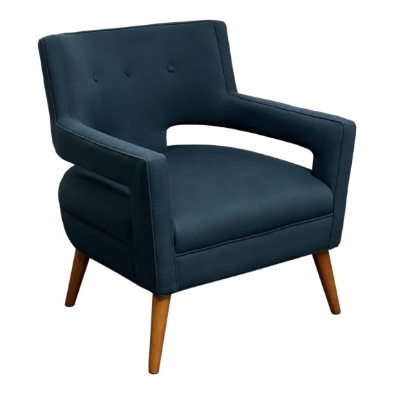 Design Plus Gallery presents the Modway Sheer Upholstered Fabric Armchair. Simple and subtle sophistication blend to create a mid-century modern armchair upholstered in soft Azure polyester fabric. The streamlined profile and flared armrests create striking silhouette, complete with button tufting and self welt trim. Crafted with dense foam padding on a sinuous spring support for exceptional comfort and elevated on cherry-stained wood legs. Light evidence of wear; consistent with age and use.