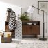 Design Plus Gallery presents the Monarch Credenza by Crate & Barrel. Designed by Maria Yee, the storage piece is crafted of solid walnut using traditional Chinese joinery. The sideboard offers a wealth of storage with 2 open shelves and 2 adjustable shelves behind soft close doors. Modern with just the right amount of Asian. Fittings are in bronze, nylon leveling feet.