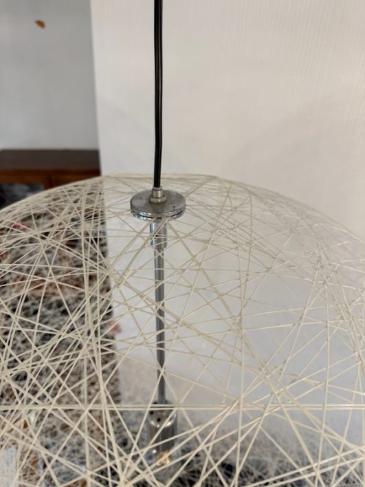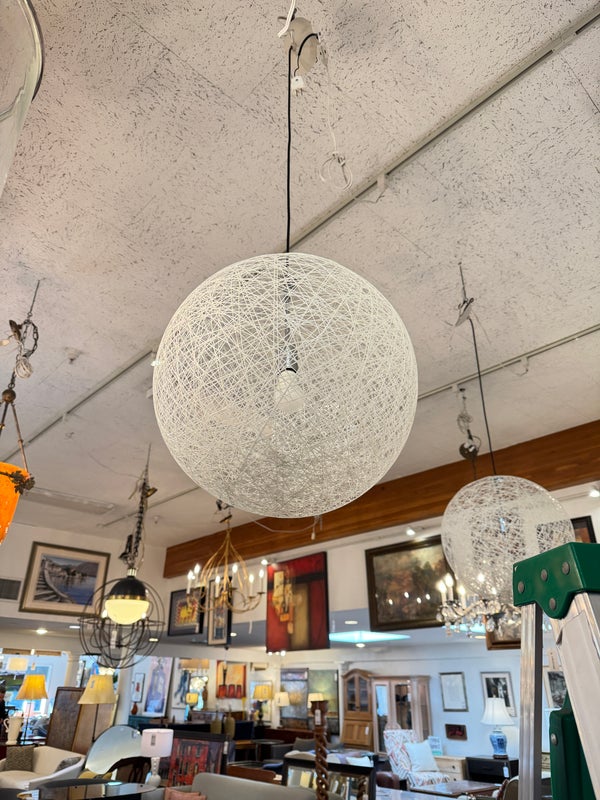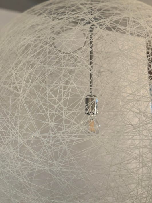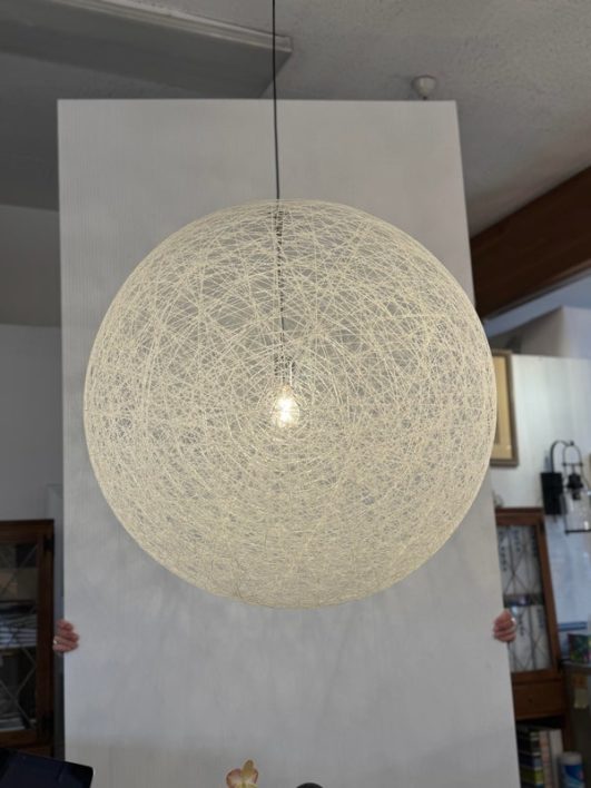 Design Plus Gallery presents a Random II Pendant Light by Moooi. Designed by Bertjan Pot in 2001. Based on the original design of the Random Light, the Random II Pendant Light transmits a feeling of simplicity, softness, and a touch of magic in a contemporary style. It is formed from fiberglass soaked in epoxy resin that is randomly coiled around an inflatable mold, creating a magic translucent 3D fabric. The shade is a unified piece with a small opening at the top for access to the lamp. The exposed bulb provides ambient, direct illumination that is ideal for illuminating foyers, living rooms, bedrooms, and dining rooms. Made in the Netherlands.