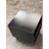 Design Plus Gallery presents the Corte Komodin Nightstand from Morini Home. This compact nightstand has a rectilinear case with an open upper compartment, a lower drawer with a metal pull, and square metal legs that give the piece a streamlined profile. The black exterior contrasts with the brushed metal base, while the drawer and open shelf provide a balanced mix of concealed and accessible storage. Its restrained geometry and mixed material construction reflect a contemporary minimalist approach. It is in good condition with visible and minimal wear from usage.