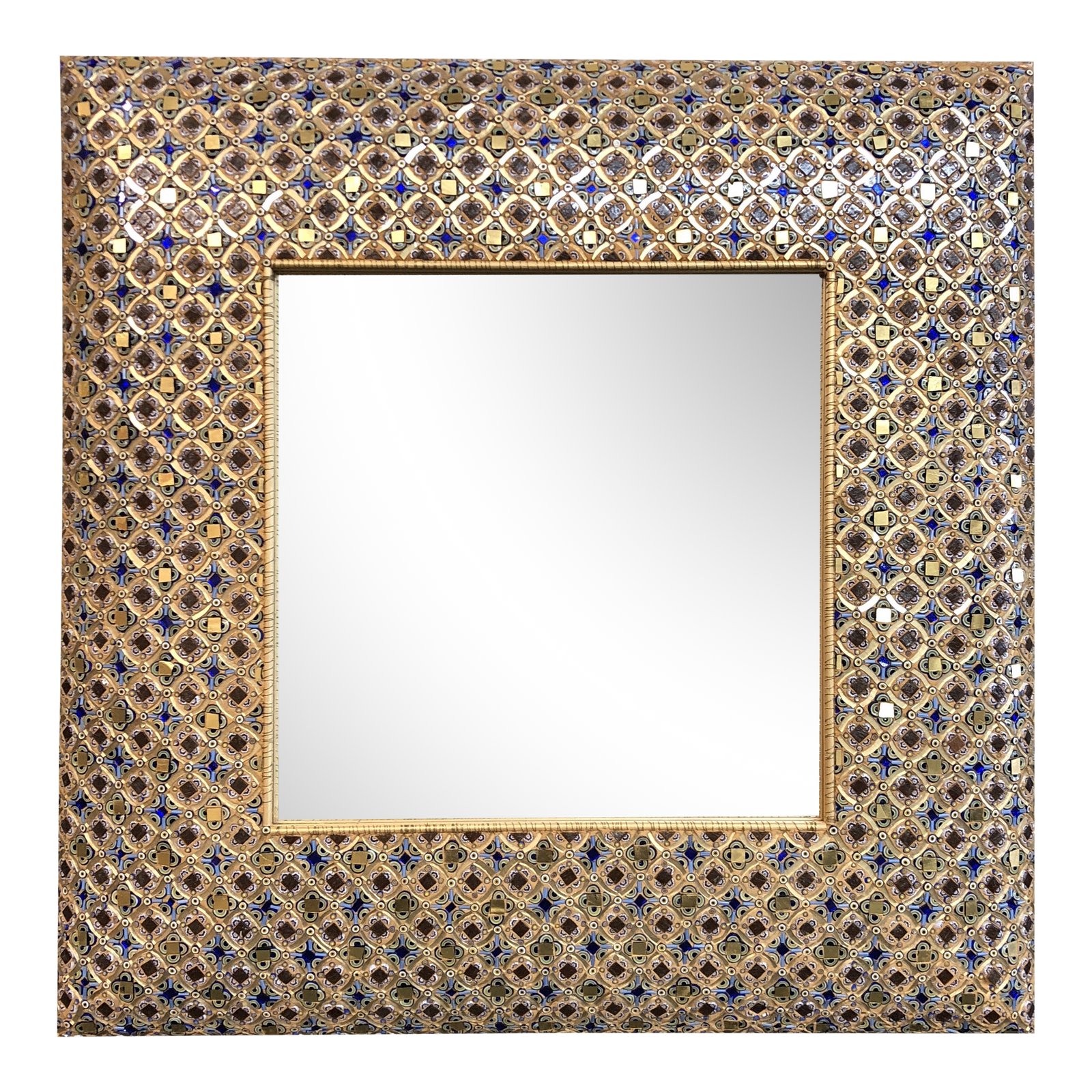 Design Plus Gallery presents a truly unique wall mirror. Crafted of tiny murano glass tiles set in a gilt frame, this is a show stopper. A reflection of your excellent taste!