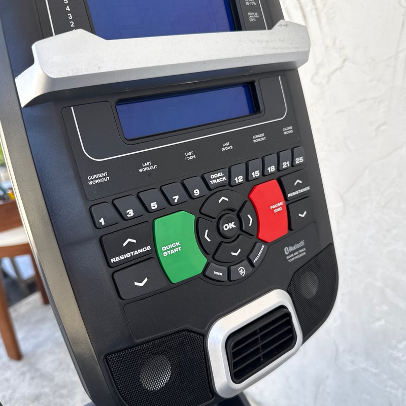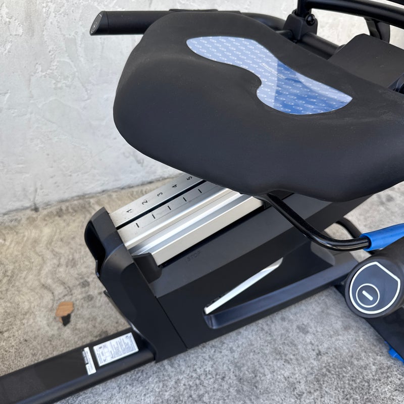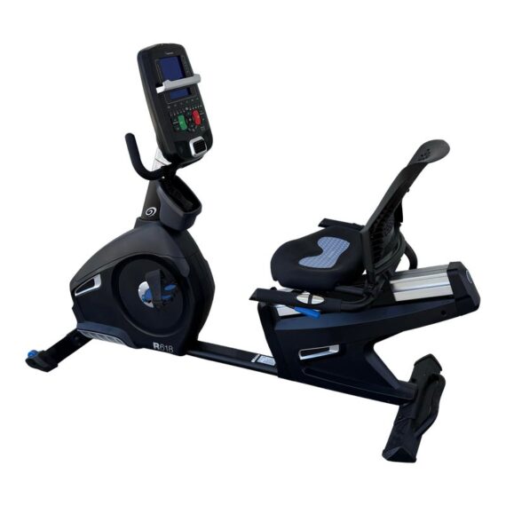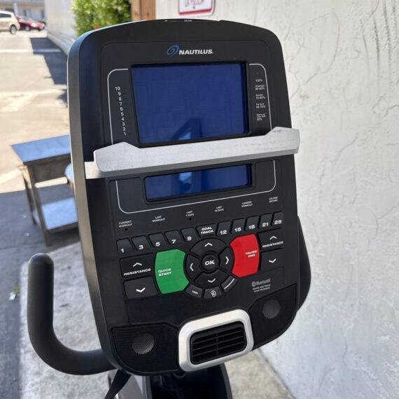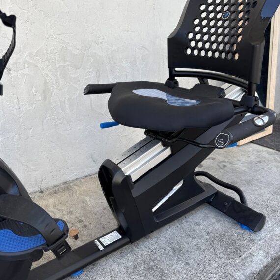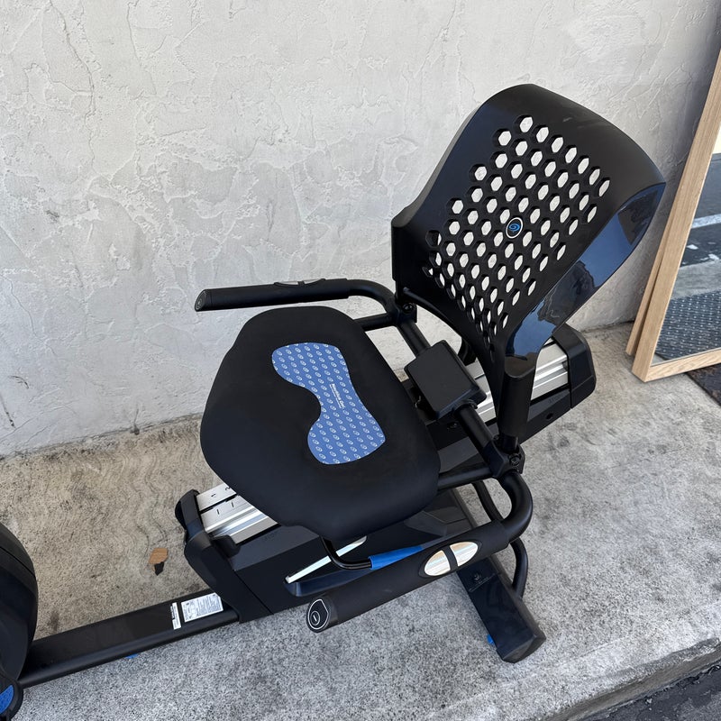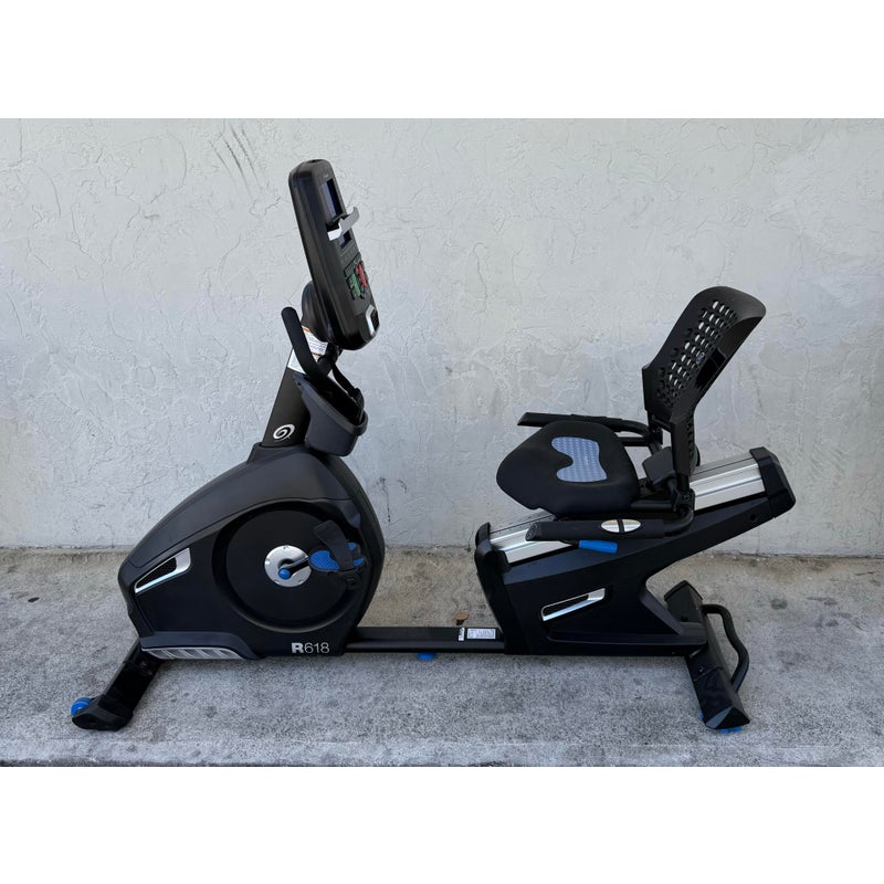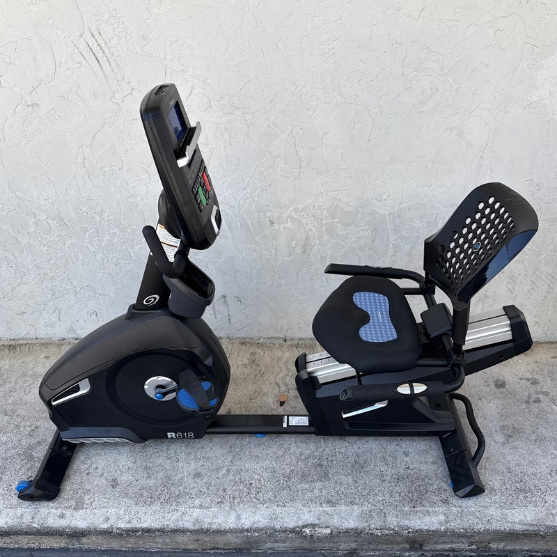 Design Plus Gallery presents the R618 Recumbent Bike from Nautilus. Designed for serious cyclists looking to find their edge, the R618 delivers tons of comfort, dozens of training programs, Bluetooth® connectivity, and free app-based tracking tools that help boost performance and results. Some great features worth mentioning is that it has adjustable angles and illuminated screens to let the user tilt the console for the best visibility to workout metrics, even when the media tray is in-use. Includes preset programs for heart rate training, interval training, and weight loss as well as customizable training options. It does also provide infinite adjustment for back support and cushions the glutes for our most comfortable ride. The bike is in good condition for its usage.