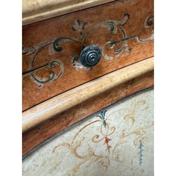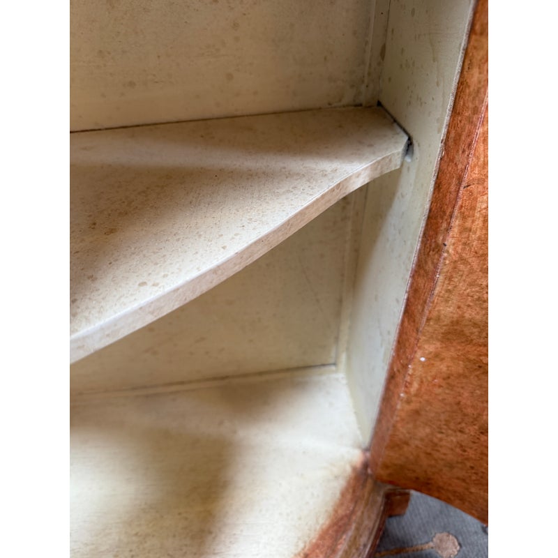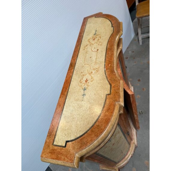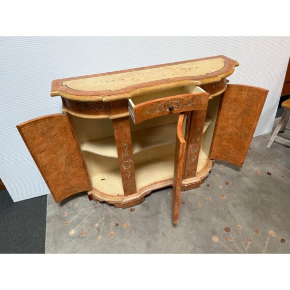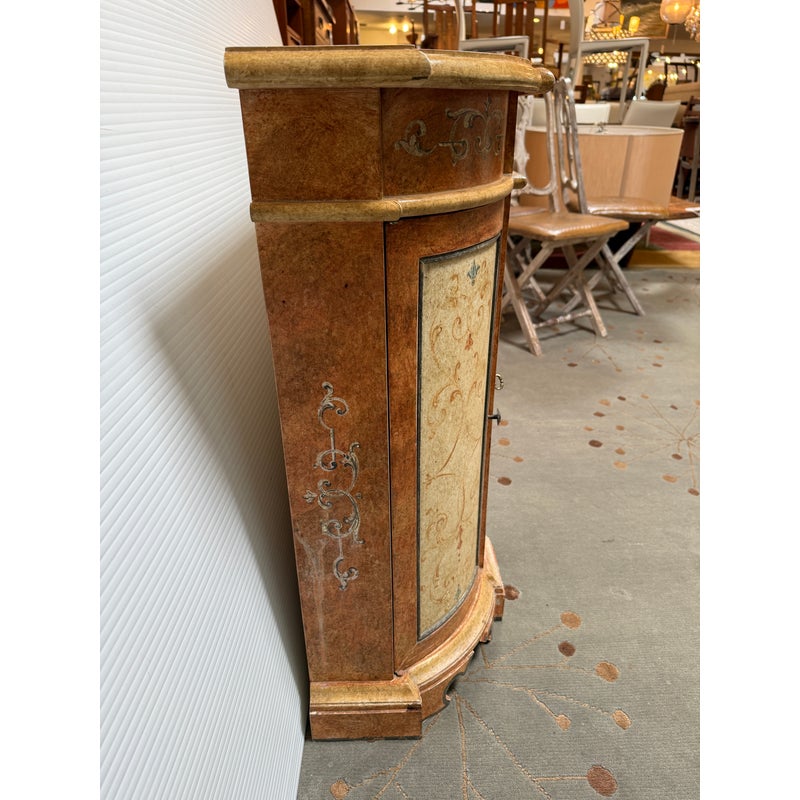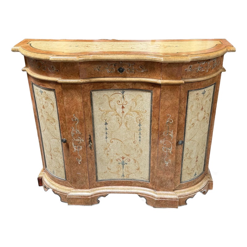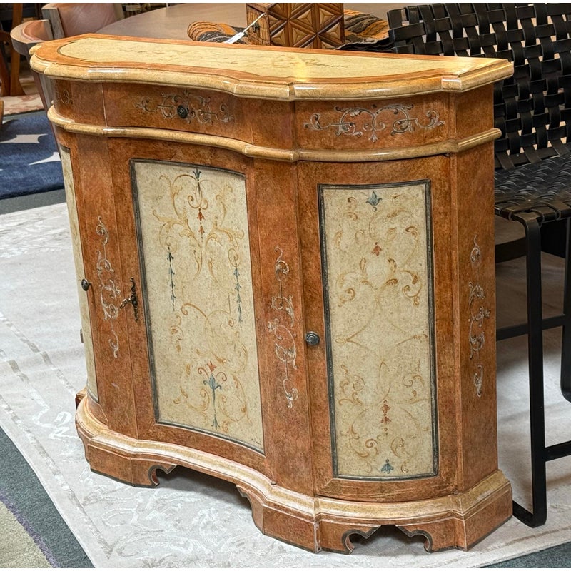 Design Plus Gallery presents a Serpentine Console from Neiman Marcus. Crafted in Italy, this lovely console provides elegant compact storage and a lovely display surface. Three curved doors swing open for storgage. Light surface wear; condition is good for age and use.
