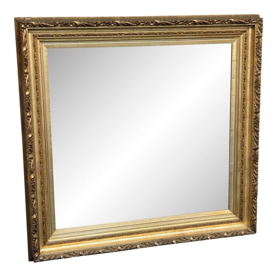 Design Plus Gallery presents a Custom Gilt Like Framed Mirror from The Painters Place. This near vintage mirror is of solid wood and gilt that covers the front for a real flourish and splash of regalness. Opulence and style combined to make this a neoclassical mirror a gorgeous addition to your home. Light wear from usage + age