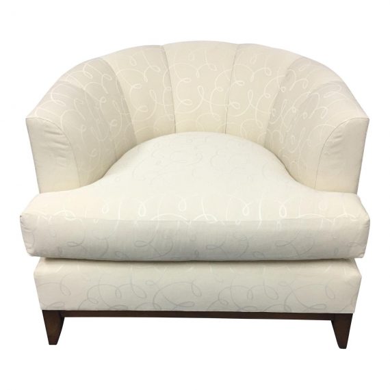 Design Plus Gallery has a new Barbara Barry Channel Back Tub Chair by Henredon. Barbara Barry’s designs are always elegant — and always timeless. Here this tub chair features a cream tone on tone swirl pattern that will bring regality and grandiosity to any living space. Ideal for households with a traditional or vintage furniture appeal. The finish is natural walnut. Seat Height: 17.5″, Arm Height: 26″.
