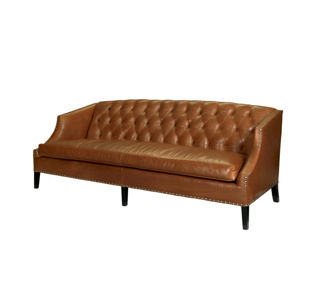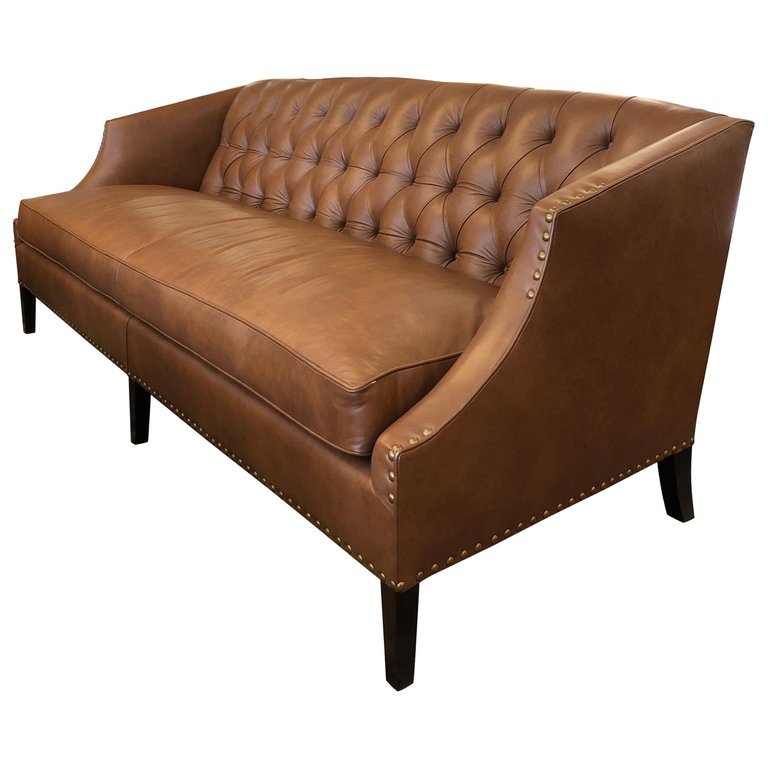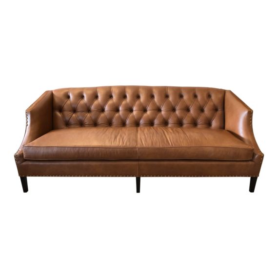 Design Plus Gallery presents a NEW Becki Sofa from Leathercraft. Beautiful tufted terracotta leather is the star on this classic piece, with antique pewter nailhead detailing. Tapered Maple legs are finished for subtle contrast. Seat cushion is feather and fiber filled. Arm Height: 29.5″ Seat Height: 20″