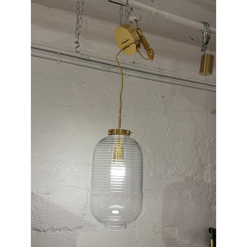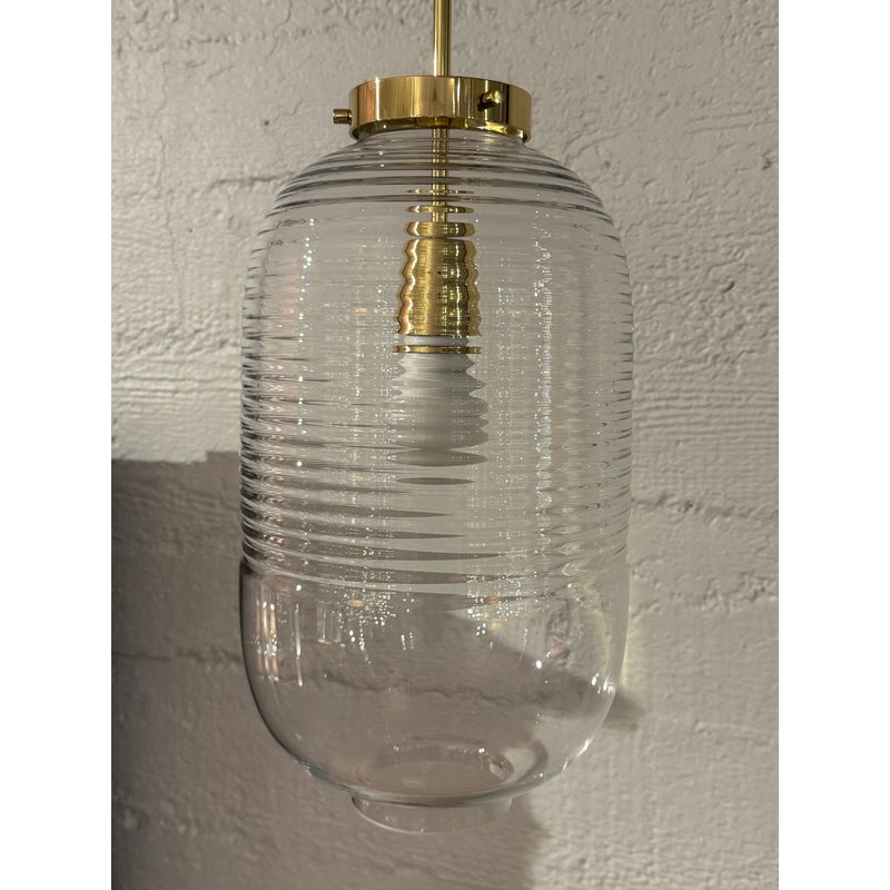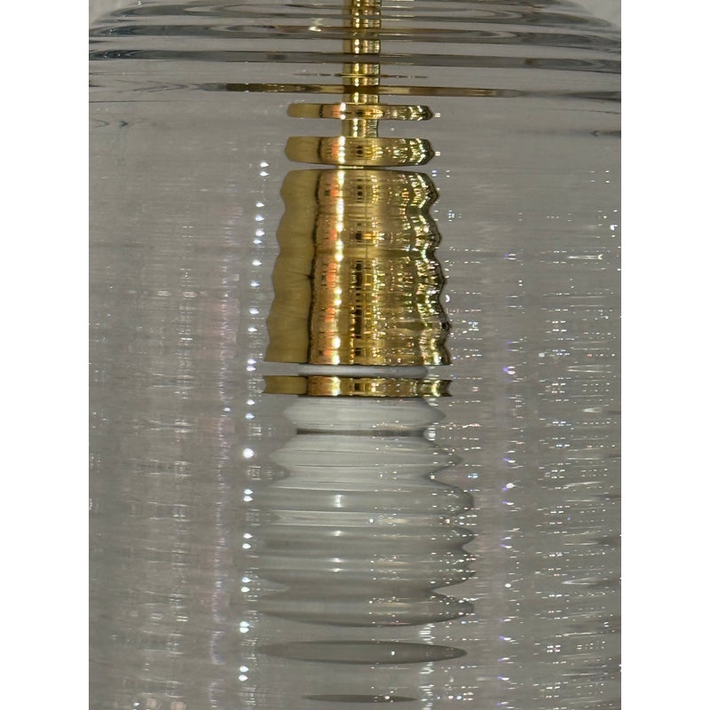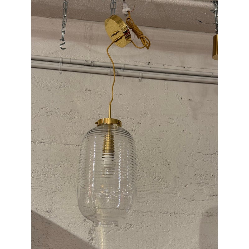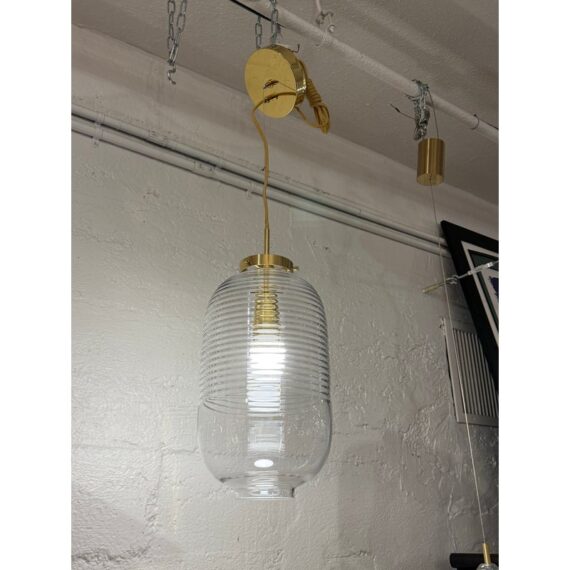 Design Plus Gallery presents the Lantern Pendant from Bomma. Bomma’s Lantern pendant reimagines the classic rice paper lantern in a contemporary glass design. Made from mouth-blown crystal glass, the clean and elegant form of the luminaire reflects the timeless essence of Japanese paper lanterns while showcasing the exceptional craftsmanship required to achieve the minimalist shape. Whether displayed as a standalone focal point or arranged in a cluster of shimmering lights, the Lantern pendant brings a harmonious blend of tradition and modernity to any space. It is in good showroom like condition for its usage.