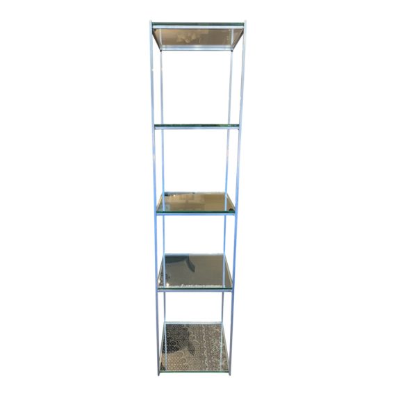Design Plus Gallery presents a Charleston Forge Spectrum Etagere. Simple lines and design make this display unit easy to blend with its transitional appeal. Slender framework supports five glass shelves and metal is finished with a satin finish.