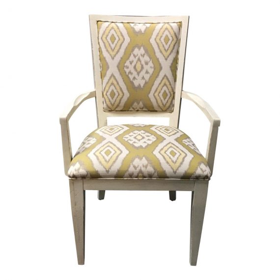 Design Plus Gallery has a new Creston Arm Chair by Drexel Heritage. Drexel Heritage specializes in classic furnishings that beautifully withstand the test of time. With a cactus green and white pattern, this beautiful armchair brings an upscale sophistication to any household. Ideal for living spaces with a traditional furniture bent. The finish is brushed linen. Seat Height: 19.5″, Arm Height:25″.