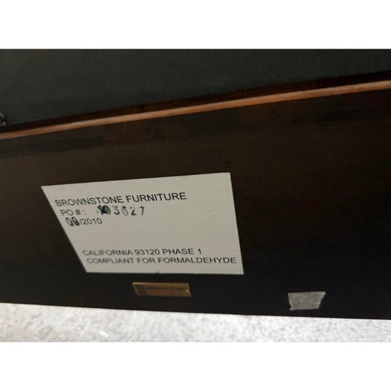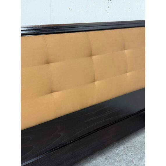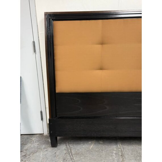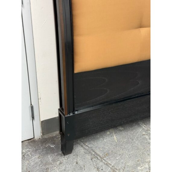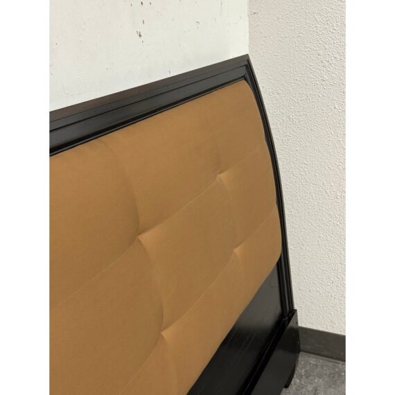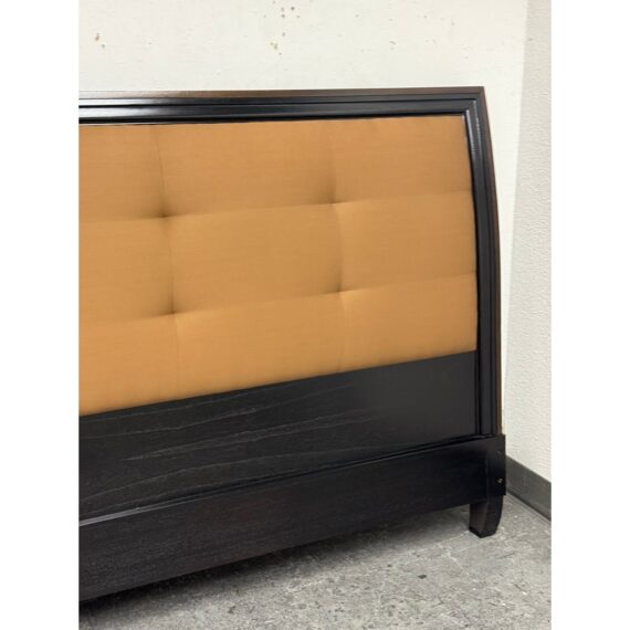 Design Plus Gallery presents a Standard King Metropolitan Headboard from Brownstone Furniture. The frame is down in a rich expresso finish with gold framed panels. Nicely appointed headboard of soft sienna brown tufted upholstery. The headboard has some mild surface wear and is consistent with usage. This is for the headboard only.