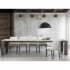 Design Plus Gallery presents a new Empire Dining Table by Trica. The contemporary base is a combination of powder coated metal and solid brushed oak. The smoke gray etched glass is anti-glare an resists fingerprints. The 39″ glass leaf folds and tucks beneath the sliding table top.