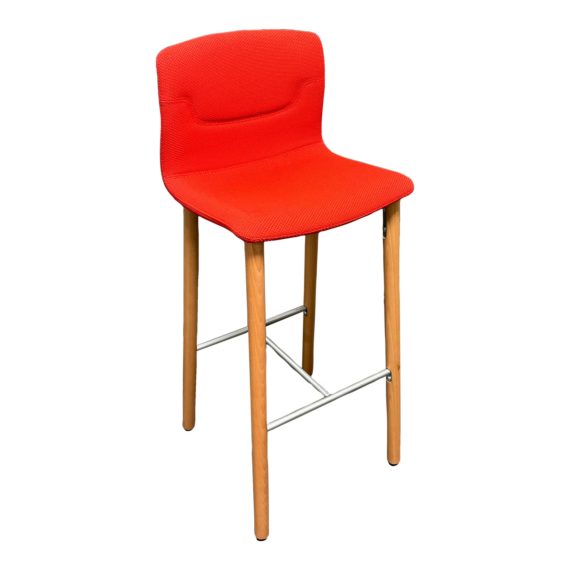 Design Plus Gallery presents a Slot Red Barstool by Gordon International. Designed by Favaretto & Partners. Model #1063WD. European hardwood legs with steel support structure. Standard finish in a natural beech. This is a showroom sample.