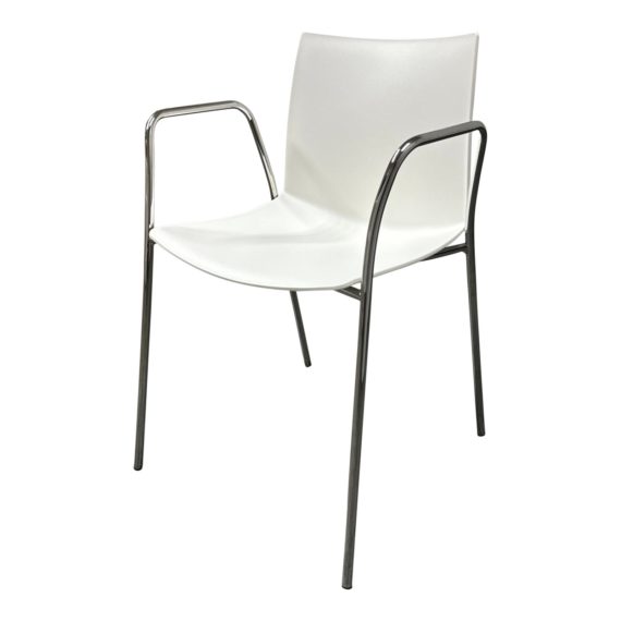Design Plus Gallery presents a Kanvas Arm Chair by Gaber for Gordon International. Designed by Stefan Sandona. Model Number #2151. A anti-microbial technopolymer frame in a white finish. The tubular frame is chrome plated. This is a Showroom Sample. Made in Italy.