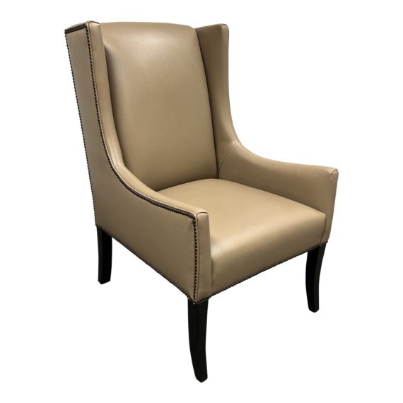 NEW Harrington Custom Leather Wingback Chair. Original Price: $1,850