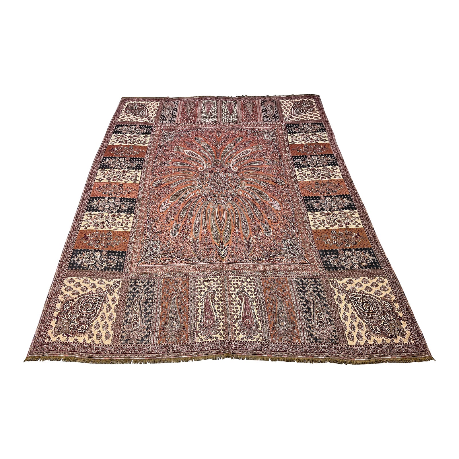 Design Plus Gallery presents a Kashmiri Wool Throw with Paisley Accents. The Indian Kashmir large throw in brown with paisley details is a luxurious and stylish addition to any home. Made from high-quality Kashmiri wool, this throw is incredibly soft and warm. The rich brown color adds a touch of sophistication to any room, while the intricate paisley details give it a unique and beautiful look. Whether you drape it over your couch or use it as a bedspread, this throw will instantly elevate the look and feel of your space. It also makes a great gift for friends and family. In good condition, with minimal signs of wear.