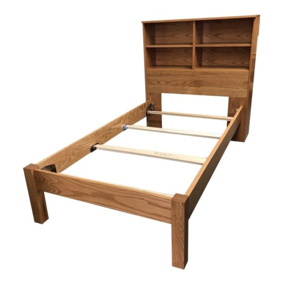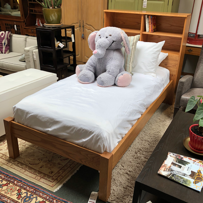 Design Plus Gallery presents a New Arts & Crafts Twin Bed, a showroom sample from Mission Works. Built of solid oak, the headboard provides storage for books or for display. Simple and functional, this classic style will stand the tests of time…and kids.