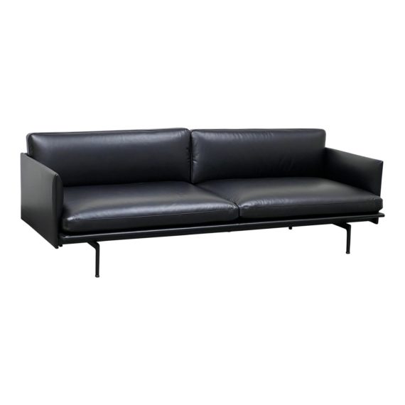 NEW Muuto Outline Three Seat Black Leather Sofa. Original Price: $7,650
