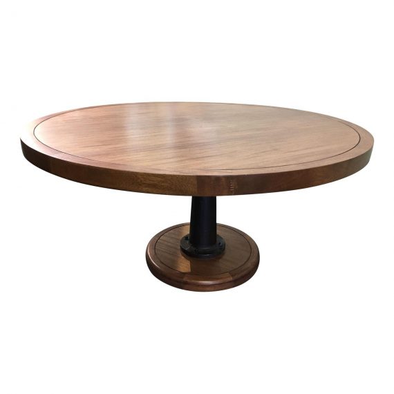 NEW Noir Yacht 60″ Round Walnut Dining Table With a Cast Iron Base. Original Price: $2,100.00