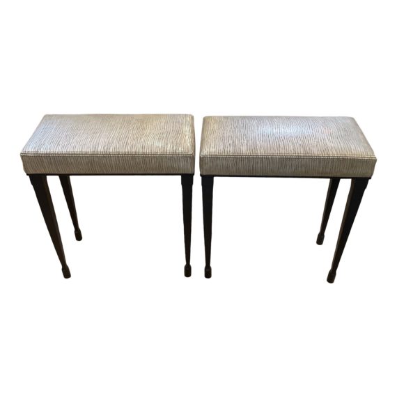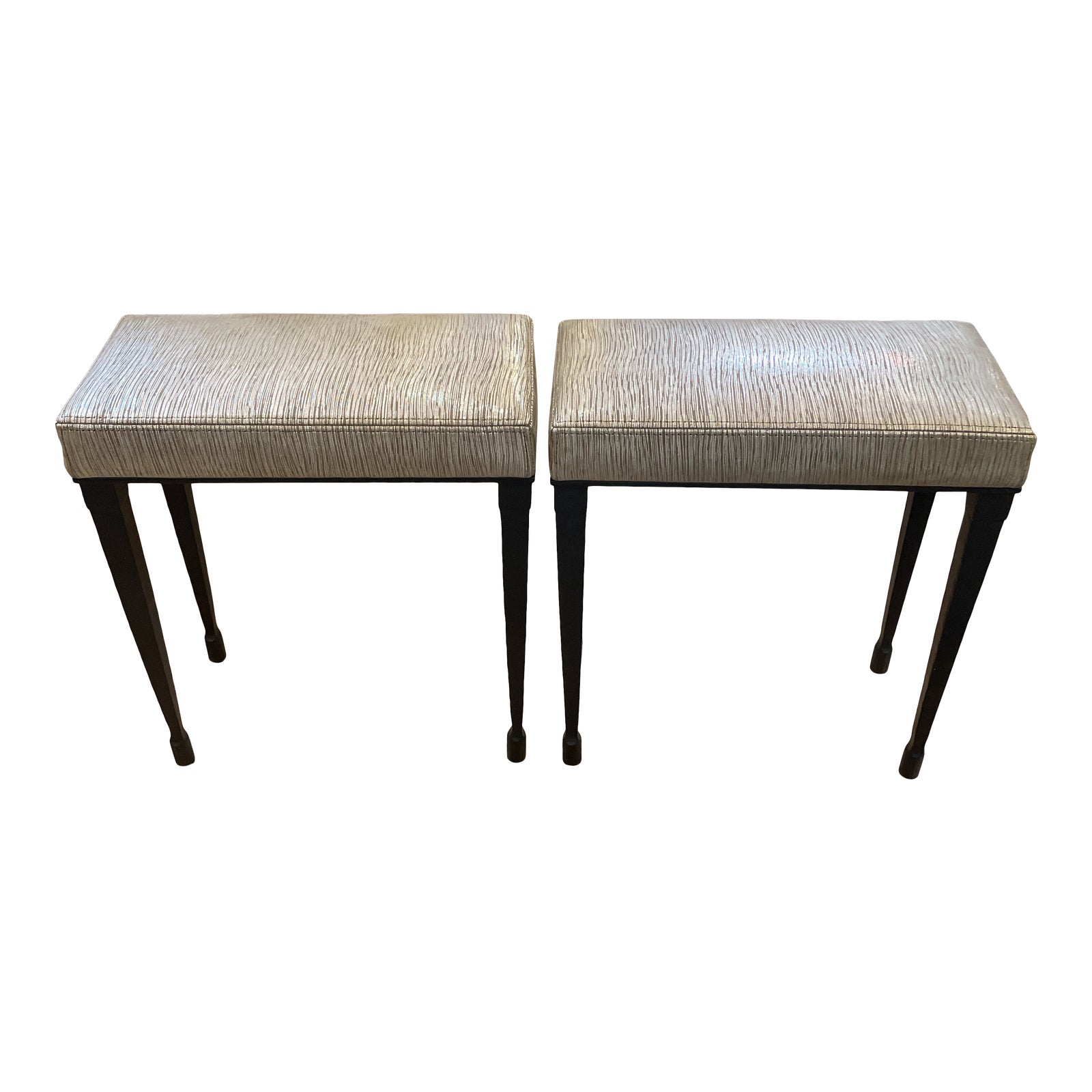 Design Plus Gallery presents a Brand New Rue De Seine Benches by Holly Hunt. Inspired by French mid-century neoclassicism, the Rue de Seine Bench stands out with its clean, sharp lines. The tailored bench cushion features a saddle stitch seam details and the iron base is hand-forged with applied mill scale texture. Upholstered in a L-3 leather with a Wavelength Pattern in a Platinum #02 color. Special ordered from Kneedler Frauchere. Made in the USA.