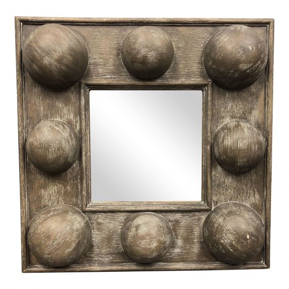 Design Plus Gallery presents a unique Palecek Apollo Mirror. The piece was constructed using only sustainable plantation hardwood with a chic circular dimensional pattern. The piece has a very Architectural esthetic. It has a White over Brown wash which gives it a vintage quality.