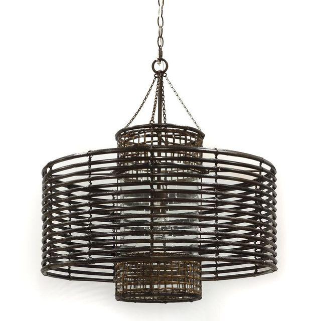 Design Plus Gallery presents a Luna Rattan Pendant by Palecek. Straight from the designer showroom a part of the Kirk Nix Collection. A glass cylinder body features coiled pencil pole rattan accented with split rattan bindings all in dark espresso finish. Pendant is complete with a bronze finished chain and canopy.