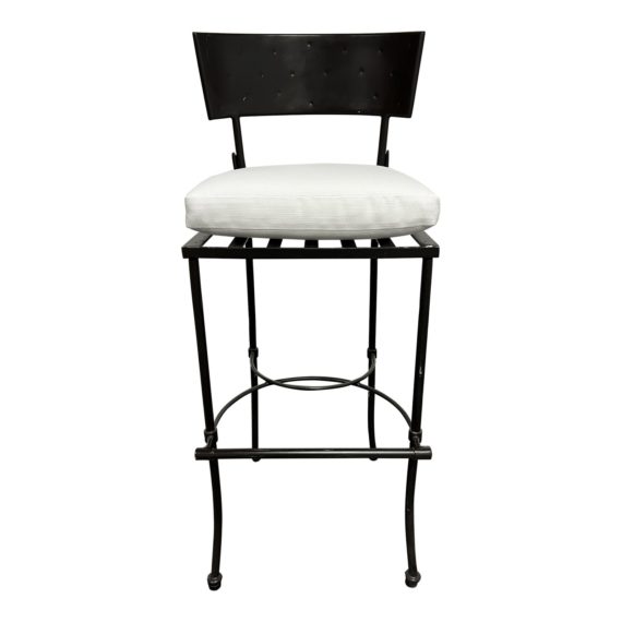 Design Plus Gallery presents a NEW Palecek Outdoor Martini Bar Stool. Constructed from iron and finished with a dark umber tone. Seat cushion is a high density foam upholstered with a “Blanco” performance grad fabric. Visible wear on frame, stool is in good condition.