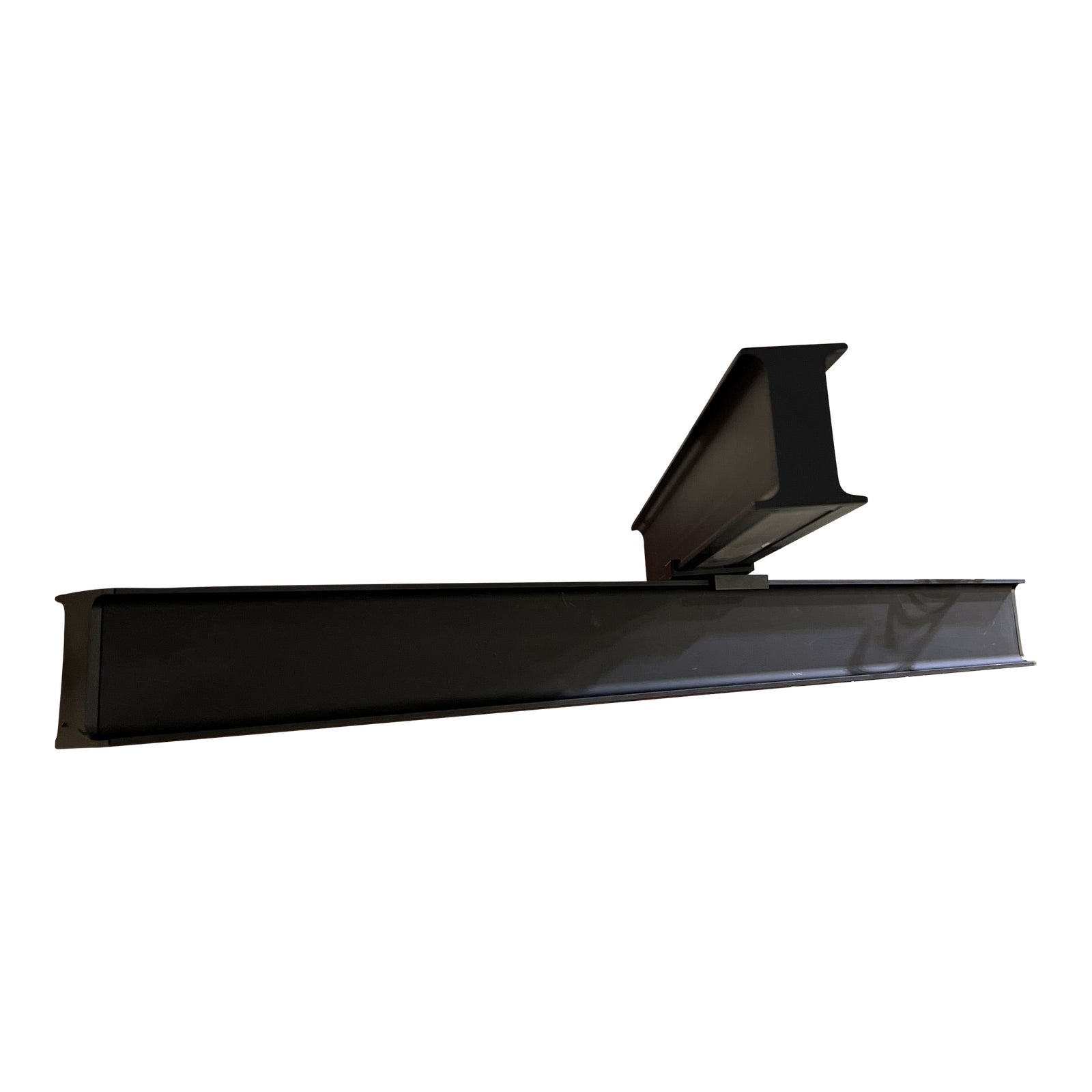 Design Plus Gallery presents a New Latis Cross LED Linear Suspension Light by RBW. The frames are constructed with extruded aluminum in a black anodized finish. Secured in the frames are extruded acrylic lenses. The two matching pieces connect in their centers and provide LED lighting. Minor wear consistent with use; lighting is in good condition.